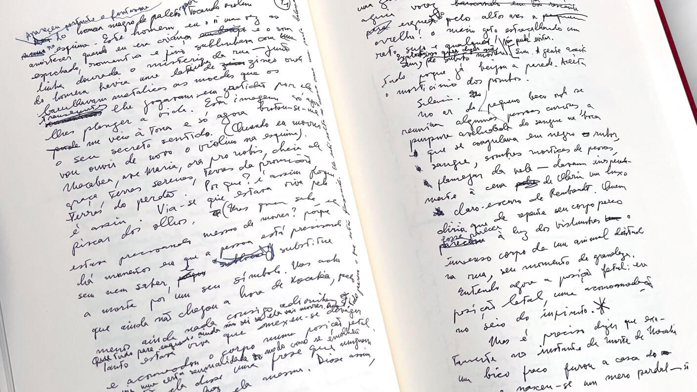 Vorhergehende Versionen, durchgestrichene Abschnitte, hinzugefügte Wörter – das Manuskript von A hora de estrela ist ein lebendes Dokument, in welchem man den Roman von Clarice Lispector im Wandel lesen kann wie eine Fotografie seiner Ausarbeitung.
