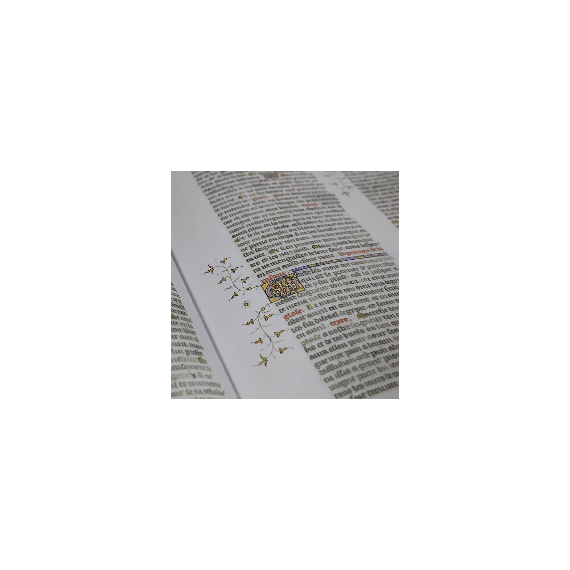 Dieses Manuskript, dessen grafische Restaurierung mehr als zwei Jahre dauerte, ist der erste Teil des Alten Testaments. Es enthält Schöpfungsgeschichte, den Auszug aus Ägypten, das dritte und das fünfte Buch Mose, Numeri, das Buch Josua, das Buch der Richter und das Buch der Könige. Der Rest wird zu einem späteren Zeitpunkt veröffentlicht.