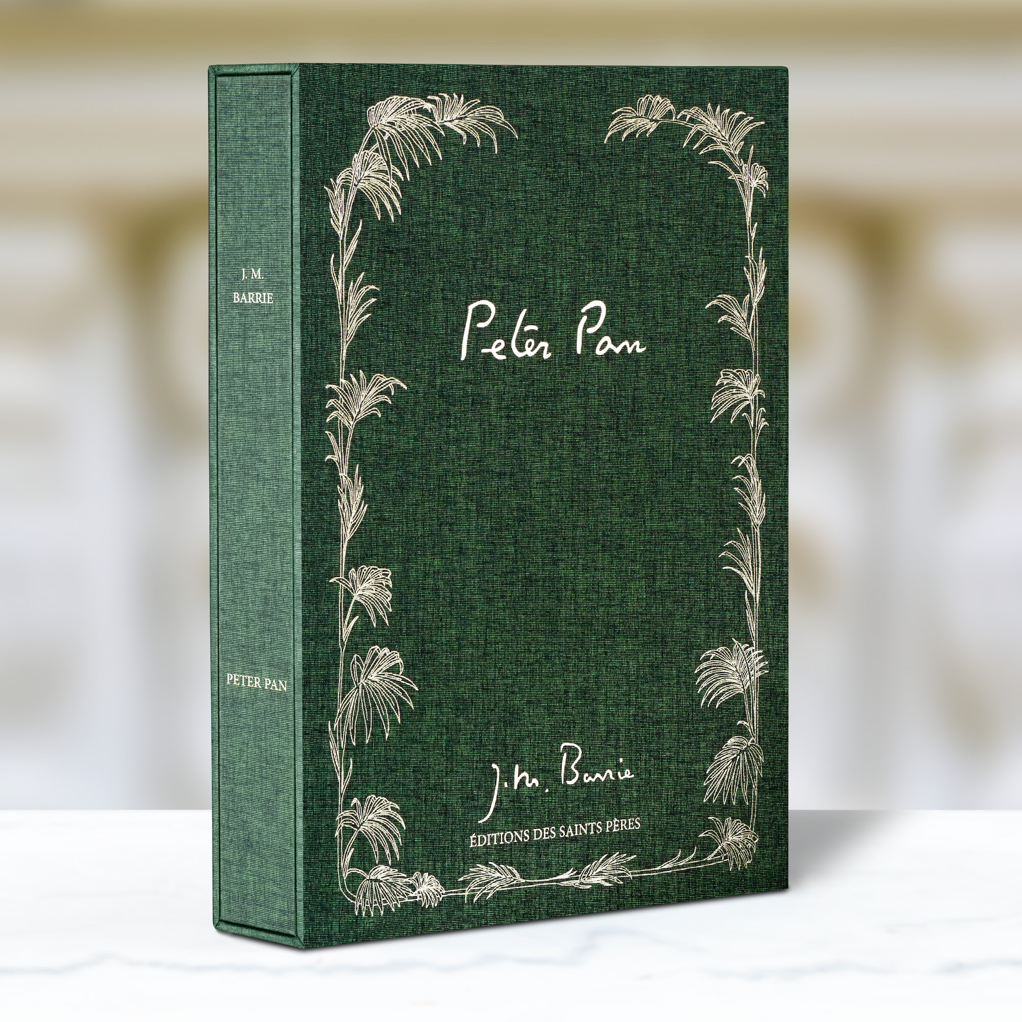 1904 entwickelte J. M. Barrie die Figur in Peter Pan or the Boy who wouldn’t grow up („Peter Pan, oder der Junge, der nicht erwachsen werden sollte“), eine „magische Komödie“, die erstmals am Duke of York Theater in London uraufgeführt wurde. Der Erfolg des Stückes war so groß, dass der Autor 1911 Peter Pan & Wendy schrieb, einen umfangreicheren Roman. Es ist dieses Manuskript, das zum ersten Mal in diesem Buch reproduziert wird, in einer von einem Team spezialisierter Grafikdesigner vollständig restaurierten Fassung und mit Illustrationen von Gwynedd Hudson bereichert.
